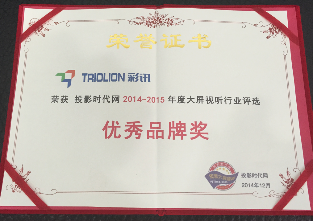 投影時(shí)代網(wǎng)年度優(yōu)秀品牌獎(jiǎng)證書